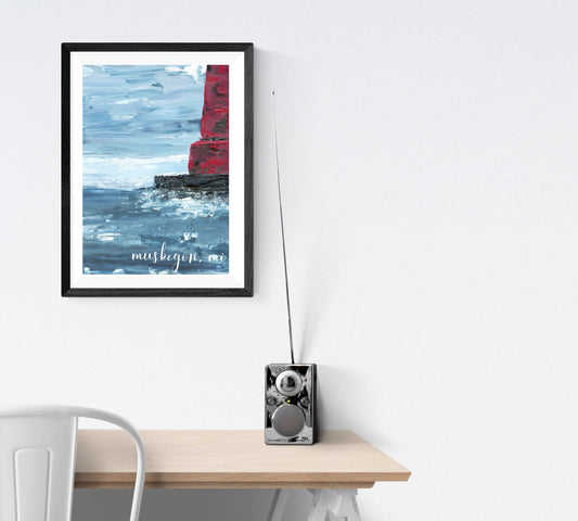 Lighthouse Print, Muskegon Michigan, Lake Michigan Lighthouse Print