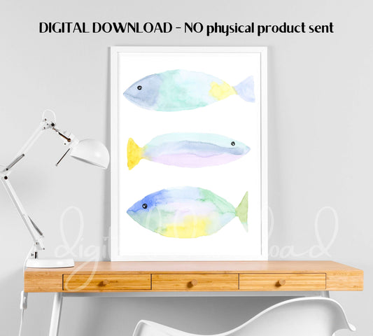 Watercolor Fish Digital Print, Kids Room Decor, Fish Wall Decor