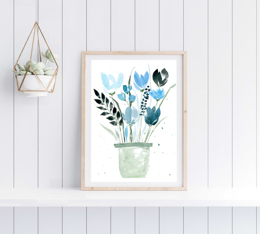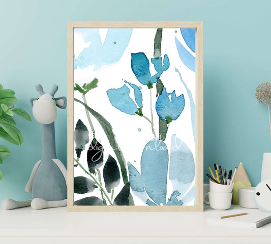 Watercolor Blue Flowers Print, Downloadable Wall Art