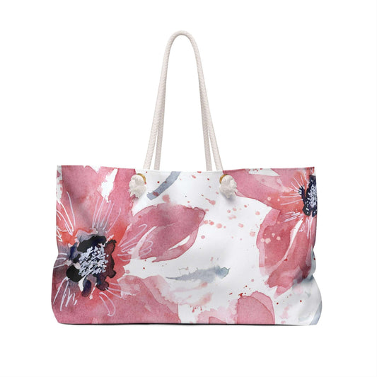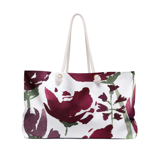 Burgundy Watercolor Floral Pink Weekender Large Tote Bag