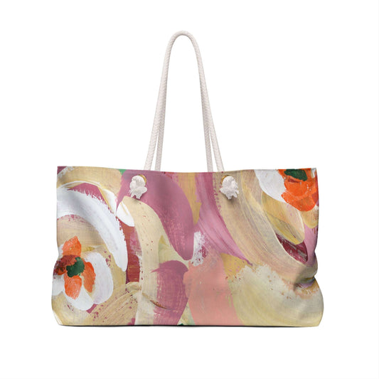 Original Art Salmon Pink Floral Weekender Tote Bag