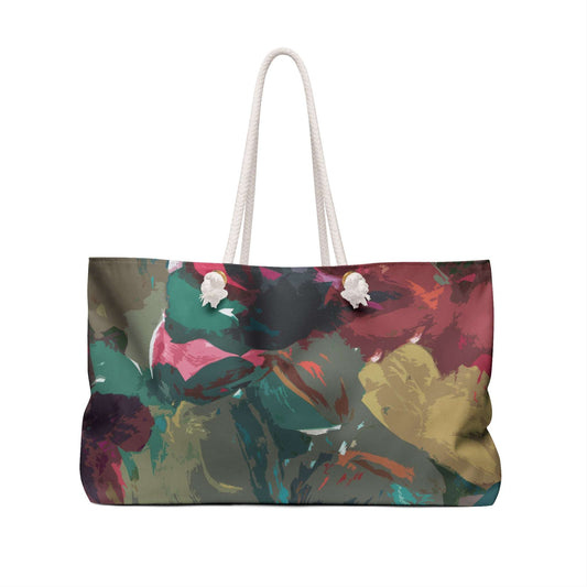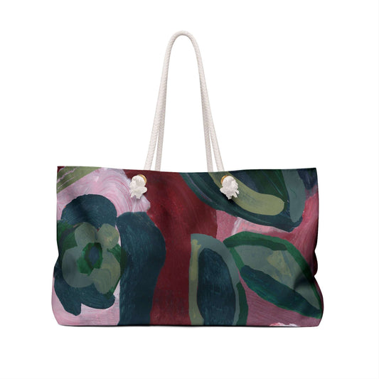 Burgundy Red Green Floral Original Art Abstract Weekender Tote Bag