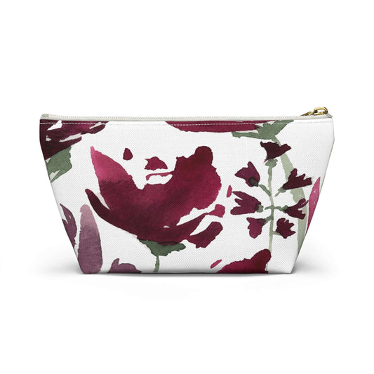 Burgundy Watercolor Floral Pink Cosmetic Travel Bag